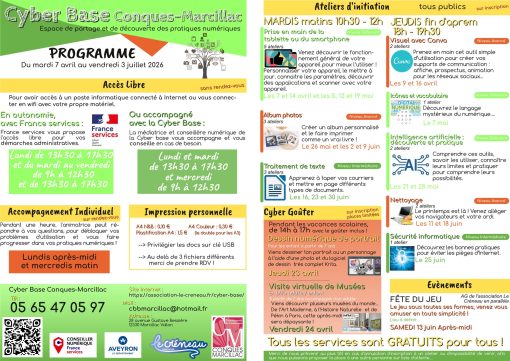 Retrouver ci-dessous le programme des Ateliers d’Initiation et des Cyber Goûter ! Vous verrez également nos horaires d’ouverture et notre fonctionnement pour l’Accès libre, l’accompagnement individuel et les services d’impression / scan 😉